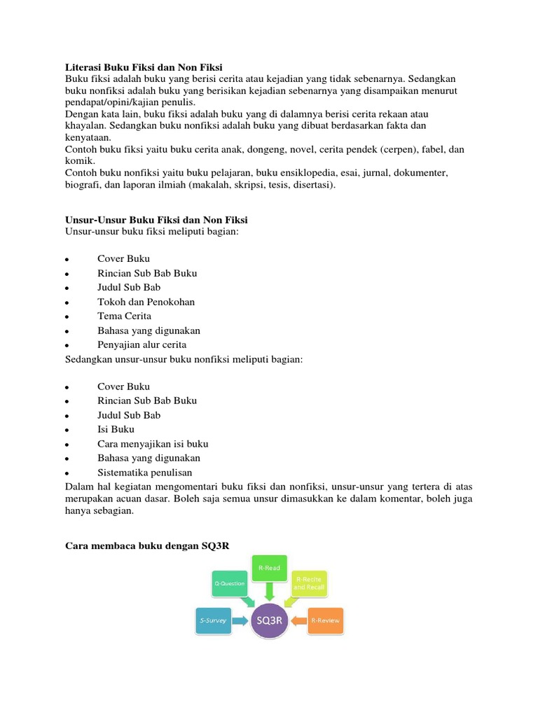 (1) bagian cover buku, (2) rincian subbab buku, (3) a. Beriku tkakak akan mencoba menjawab pertanyaan tersebut. Dalam bahasa belanda istilah tersebut juga memiliki arti sama yang dikenal dengan recensie sedangkan dalam bahasa inggris biasa dikenal dengan istilah review. Literasi buku fiksi dan non fiksi buku fiksi adalah buku yang berisi cerita atau kejadian yang tidak sebenarnya. Sedangkan buku nonfiksi adalah buku yang dibuat berdasarkan fakta dan kenyataan.